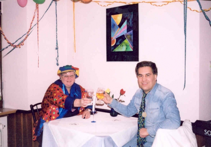 Paul exhibiting in the Stochehus Restaurant gallery in Wehr/Baden, Germany in 2004 and he shown with Wehr's Mayor, Mr Thater.